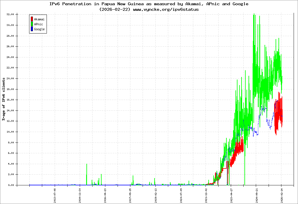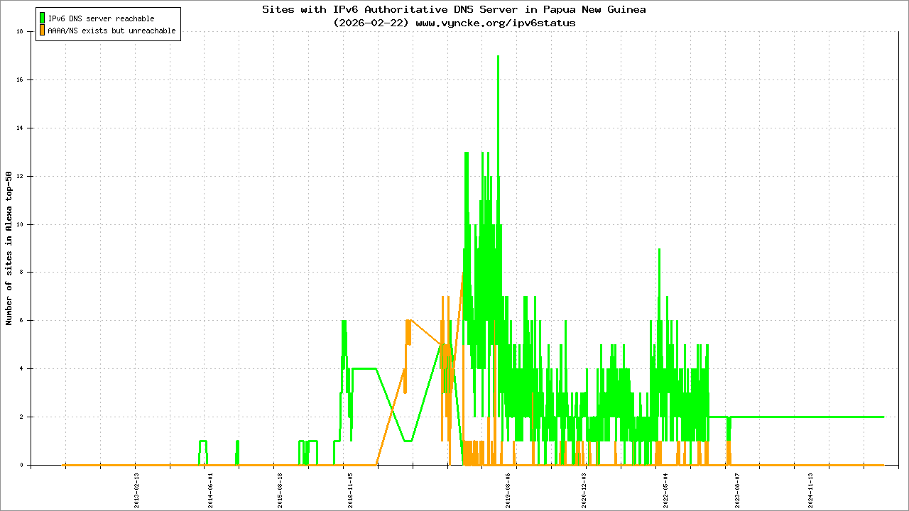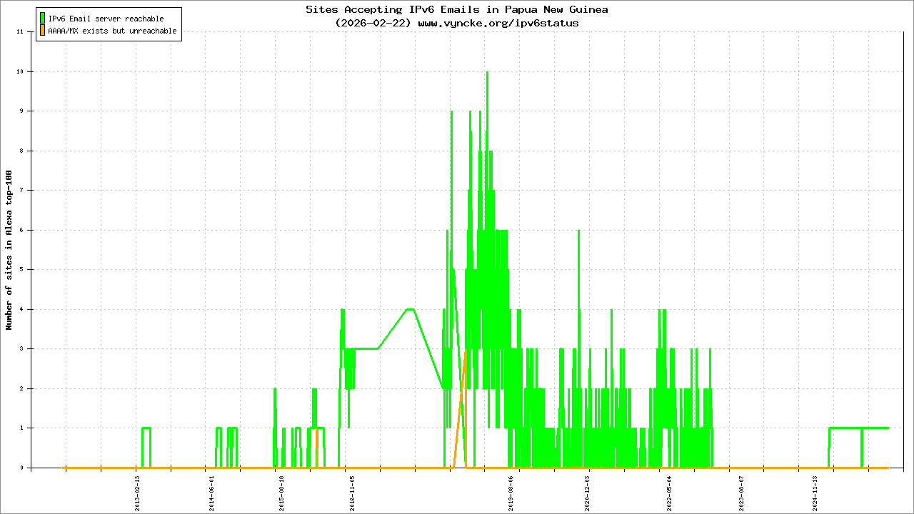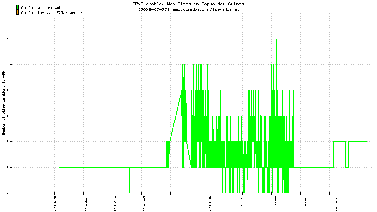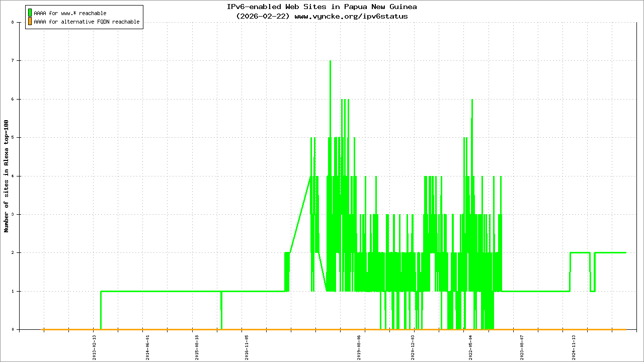 Papua New Guinea is scanned since 2011-10-25 and the last information is dated 2025-02-15.
